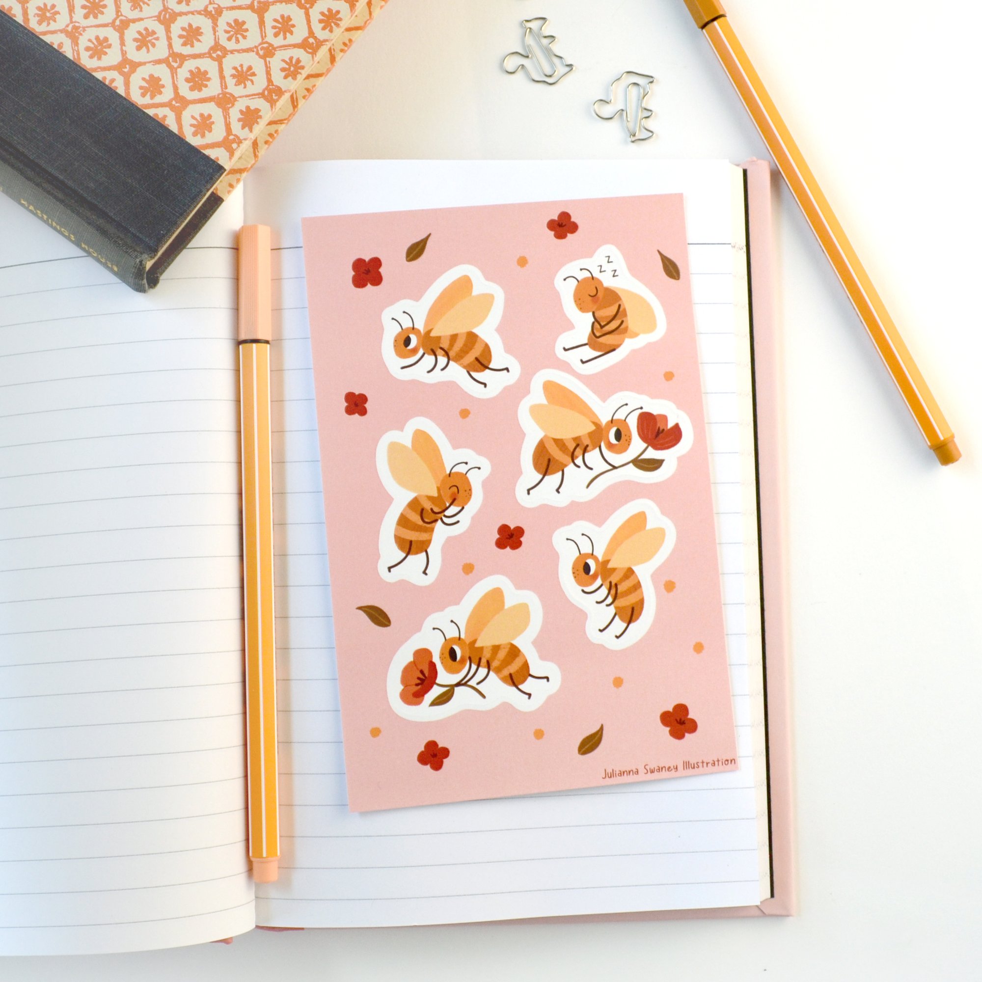 Customize your planner or water bottle with these cute bees stickers inspired by Spring! Each sheet has 6 bees flying, and napping, among spring flowers.